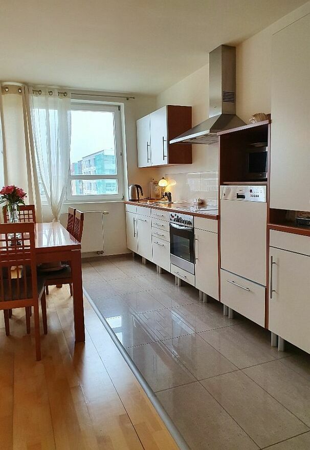 Duplex apartment – quiet and bright, fully furnished, 24h reception, lift, garage place, balcony, 2 toilets, patio.