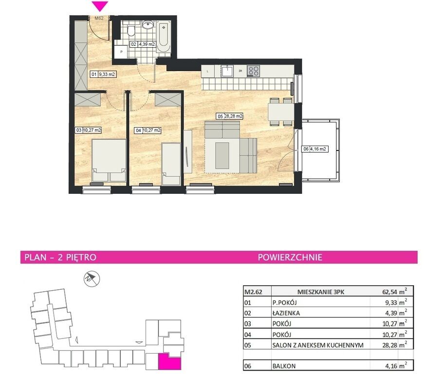 W ofercie na sprzedaż ustawne, 3-pokojowe mieszkanie o powierzchni62,54 m², położone w atrakcyjnej i spokojnej części Warszewa