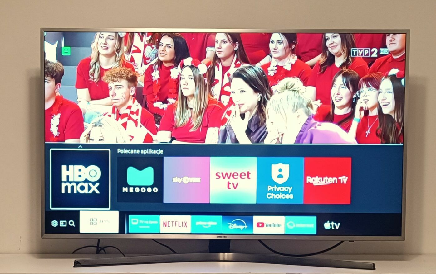 - SMART TV ze znanych aplikacji są : YouTube, Netflix, Chlili, TVP.VOD, Prime Video, cda.pl, Rakuten TV, player, CANAL+ PREMIERY, Rakuten TV, Disney +, Spotify, SMART IPTV, tvn24, TV Cast, viaplay, polsat box go, HBO max, skySHOWTIME, o pogodzie, zagraniczne i gry