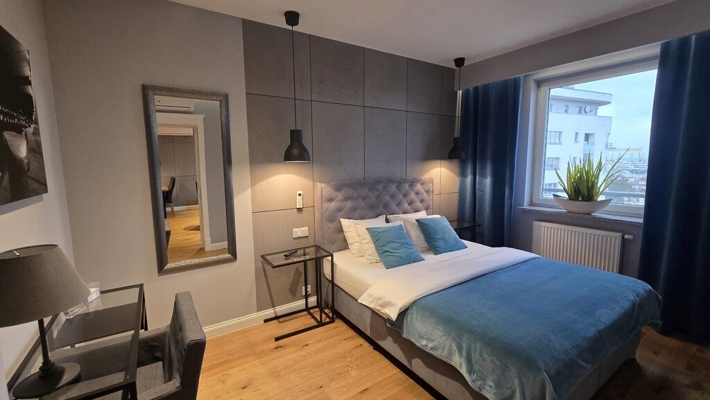 Oferujemy na wynajem luksusowy, klimatyzowany i przestronny apartamento powierzchni 46 m², położony na 8. piętrze w nowoczesnym,