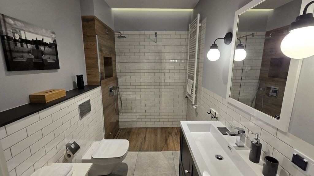 Łazienka: Z dużą, komfortową kabiną prysznicową.