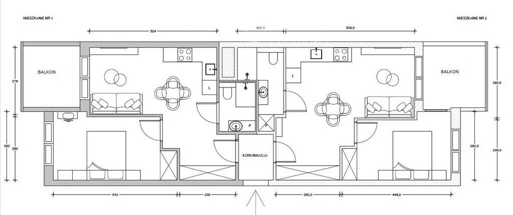 przekształcenia na dwa dwupokojowe mieszkania. Przygotowany został