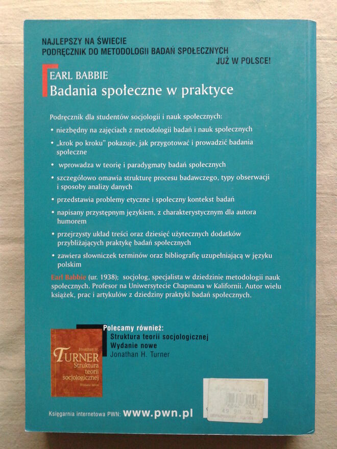 Sprzedam podręcznik akademicki "Badania społeczne w praktyce" E. Babbie (wyd. I).Książka w stanie b. dobrym, nieznaczne ślady użytkowania, bez napisów i podkreśleń.