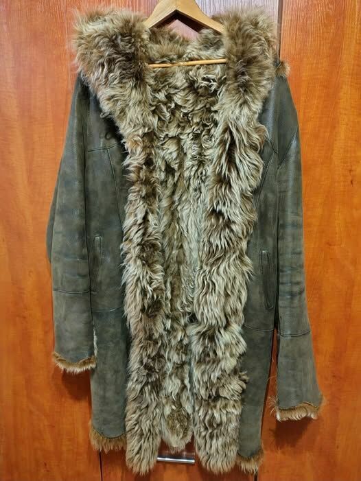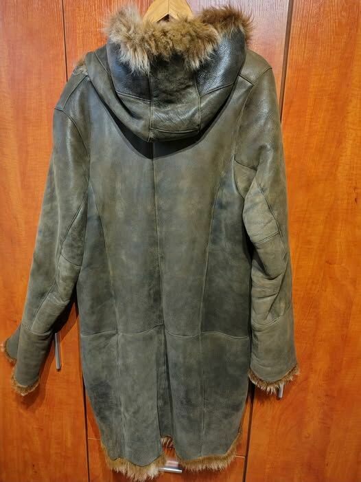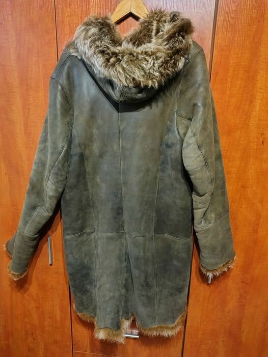 sprzedam damski kożuch z kapturem w dobrym stanie w kolorze zieleni butelkowej, kupiony w górach w Nowym Targu, rozmiar XL-XXLwymiary: dlugość kożucha 95 cm, dlugość rękawa 68-70 cm, obwód pachy 60-70 cm, obwód klatki piersiowej 120-122 cm, szerokość bioder 124-126 cm