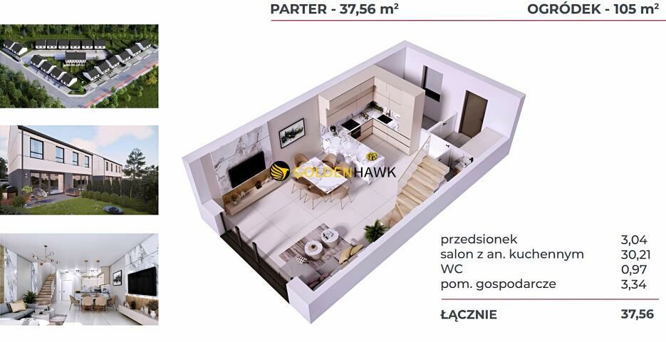 Domy o powierzchni użytkowej 93,51 m z ogródkami od 75 m do 282 m cena od 920 000 zł do 950 000 zł (w zależności od wielkości ogrodu)
