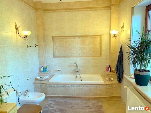 Kolejną atrakcją tej nieruchomości jest przestronna, wyposażona kuchnia (EBK) z 9-metrowym blatem wykonanym z prawdziwego granitu i wbudowanymi urządzeniami Miele. Wyposażenie domu charakteryzuje się najwyższym poziomem luksusu i nie pozostawia nic do życzenia.
