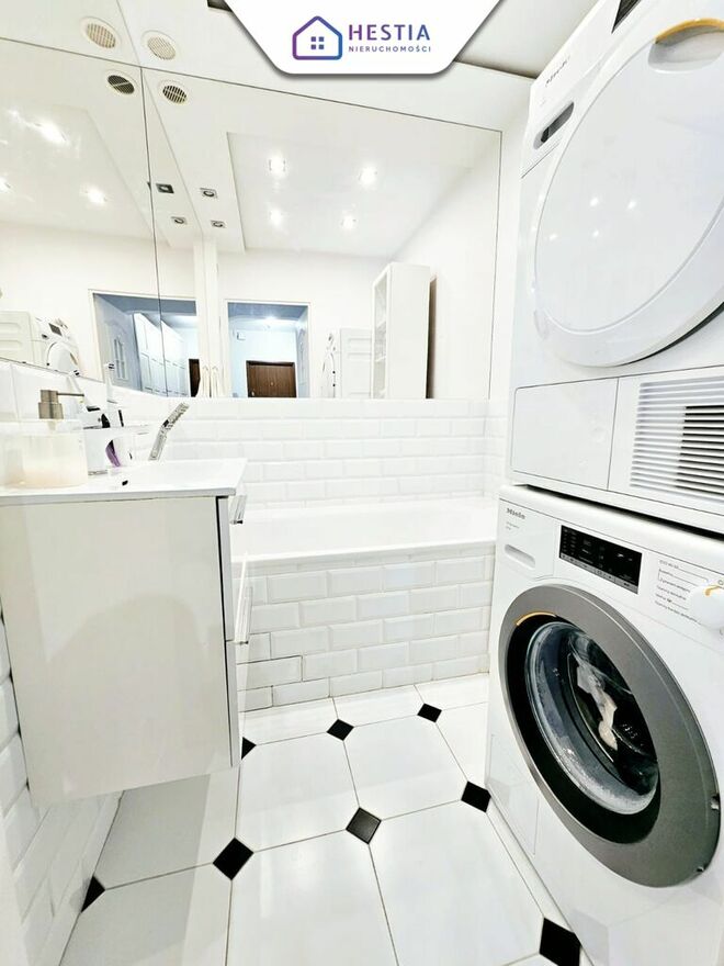 cenie pralka i suszarka Miele), oddzielnej toalety. Do mieszkania