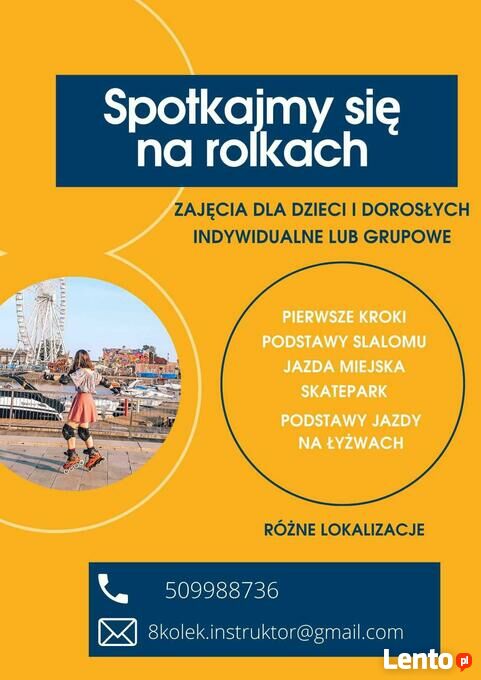 Pierwsza godzina za połowę ceny!Chcesz nauczyć się jeździć lub podnieść swoje umiejętności? A może chcesz, aby twoje dziecko zaczeło stawiać pierwsze kroki na rolkach? Zapraszam na zajecia indywidualne lub w malych grupach.