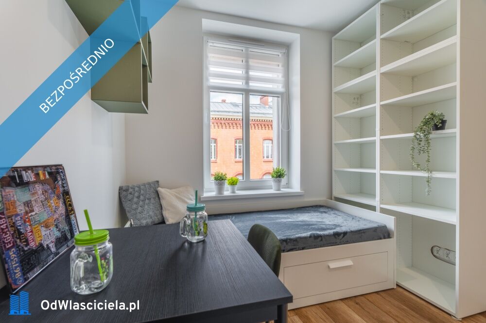 Powierzchnia ok. 15 m2. W pełni wyposażona np. jest w łóżko, biurko, krzesło oraz szafę, itd. Szybki internet w cenie!