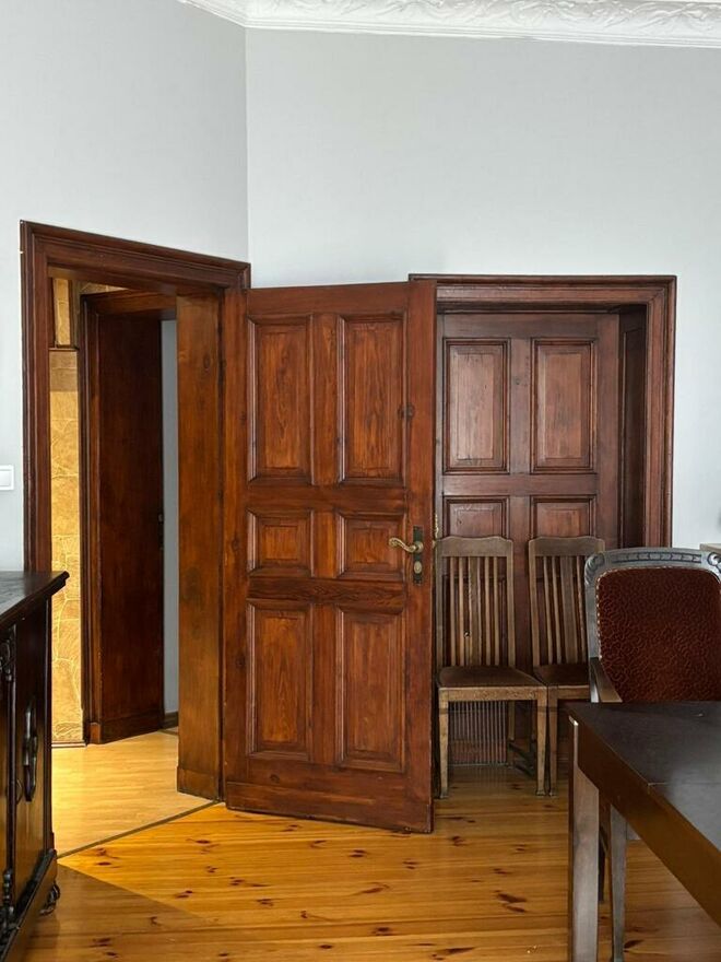 Wnętrze zachwyca oryginalnymi detalami – zachowane drzwi,