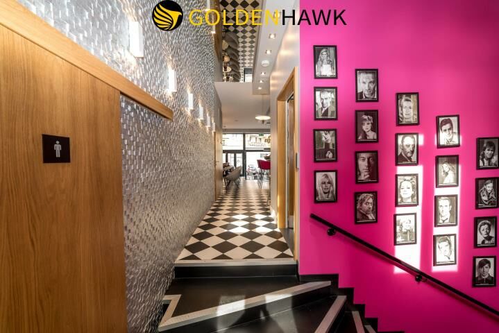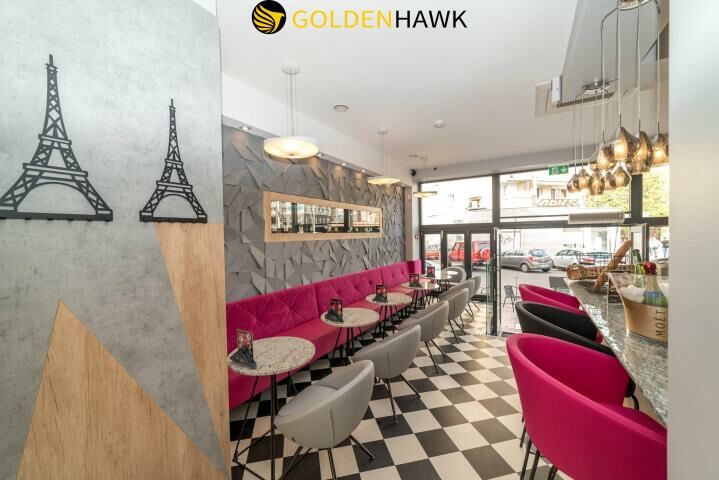 - Główny bar na parterze wyposażony w szklana witrynę, 2 lodówki "Liebherr", kostkarka, zlewozmywak z prysznicem, zmywarka-wyparzarka na szkło, komputer kasowy wodoodporny POSNET z oprogramowaniem Gastro POS.