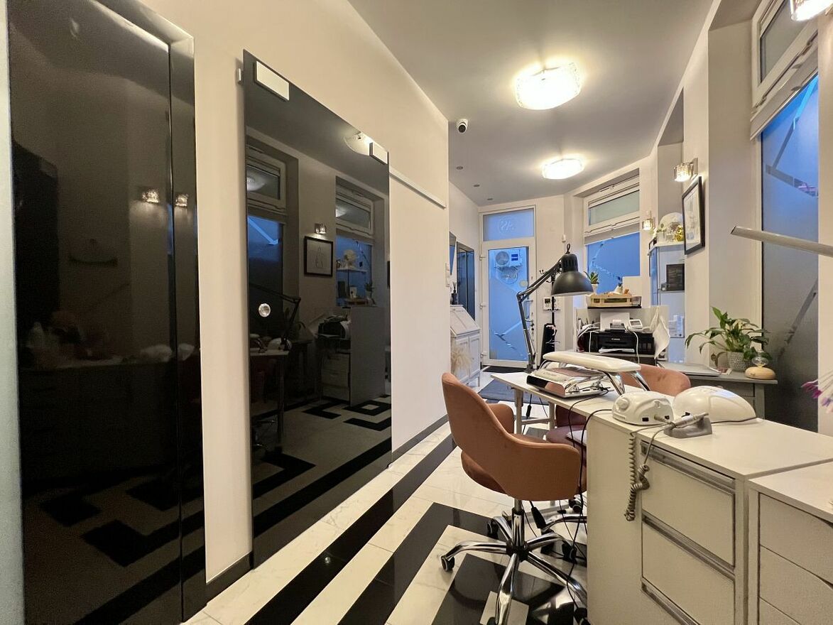 - Dużego pomieszczenia frontowego: (elegancka poczekalnia, stanowisko manicure, duże witryny, pięknie doświetlające wnętrze i nadające mu prestiżu