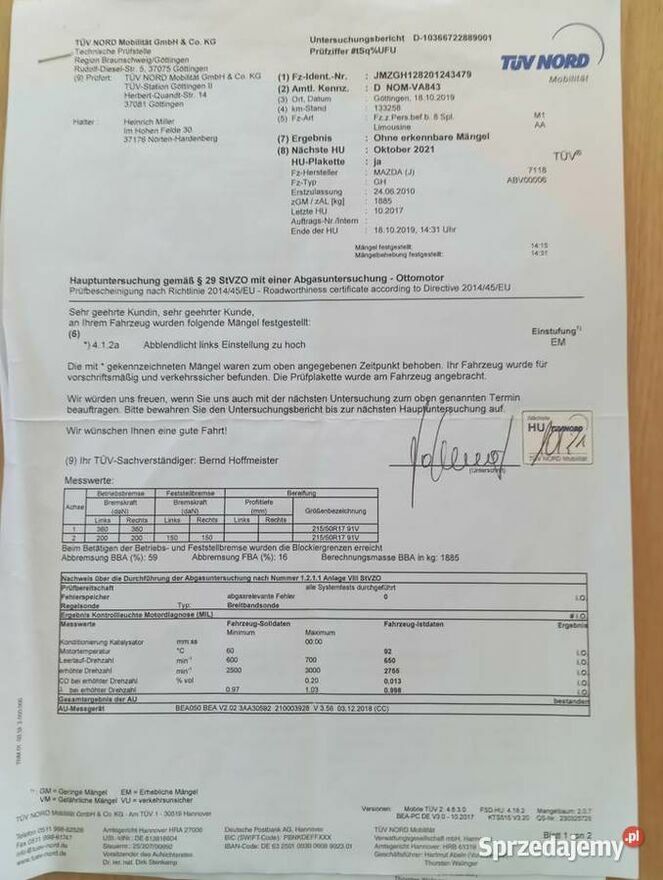 Samochód kupiłem niemal 4 lata temu dla żony na dojazdy do pracy ze stanem licznika 145.000 km. Założyliśmy w nim instalację gazową STAG przy stanie 147.000 w firmie Gaz-Tech w Szczecinie. Sprawuje się dobrze, dzięki instalacji LPG jest też oszczędna. Samochód ogólnie niezawodny. Przegląd do 3.07.2026. OC do 11.10.2026. Samochód na nowych oponach wielosezonowych założonych w 2024. Dla chętnych mogę dodać osobno komplet używanych letnich. W listopadzie 2023 r. wymieniłem akumulator na Bosch. W 2024 założyłem nowy wydech a także wymieniłem hamulce tj. tarcze i klocki. Samochód w ciągłej eksploatacji. Przebieg z Niemiec potwierdzony dokumentem TUV (niemieckiego przeglądu technicznego). Polecam.Powiadom o podobnych ogłoszeniach