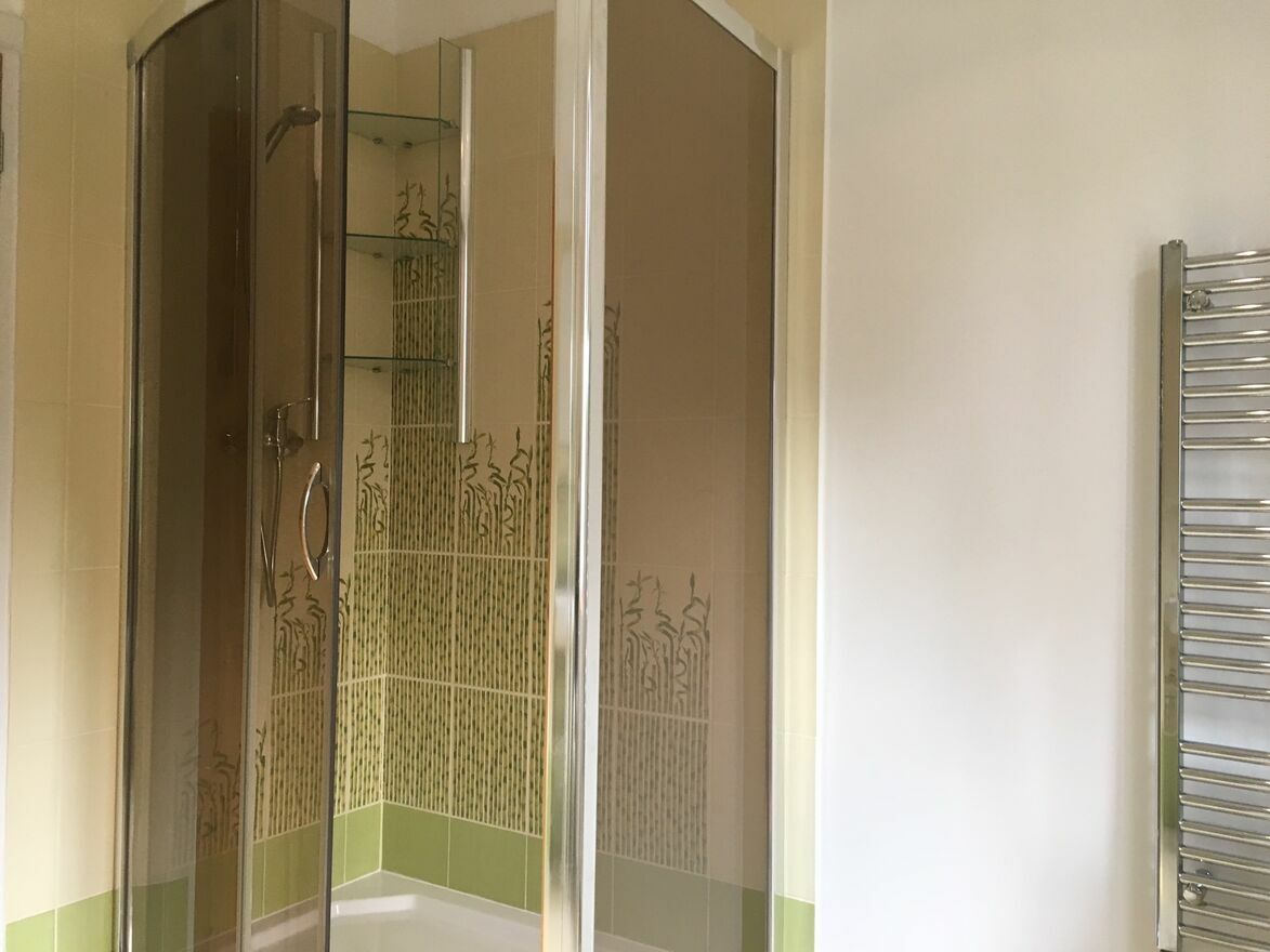 -duża łazienka z kabiną prysznicową i ogrzewanie podłogowe