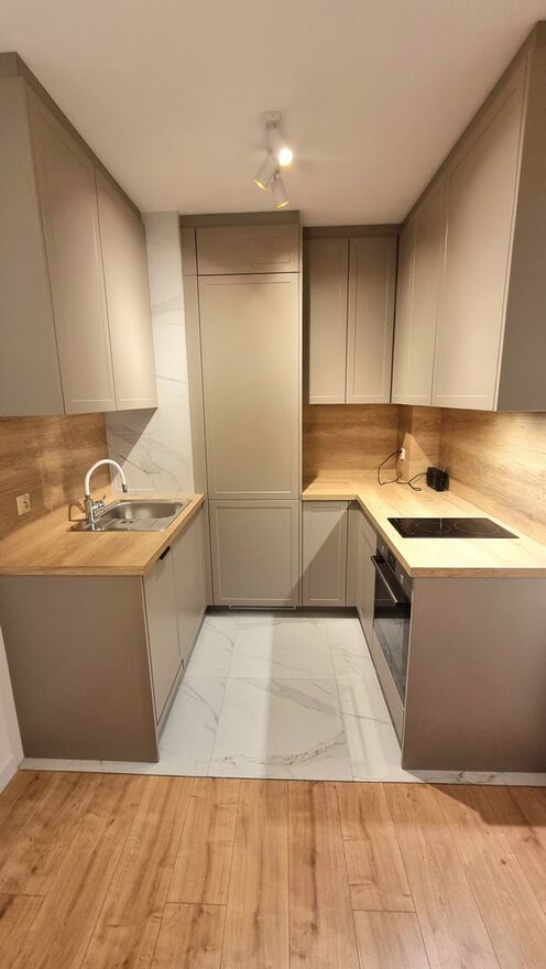 Funkcjonalny aneks kuchenny w nowej zabudowie do samego sufitu (system
