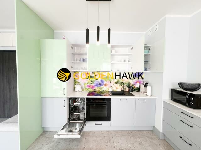 Na wyposażeniu m.in. zmywarka, płyta indukcyjną, lodówka ,piekarnik, pralka.