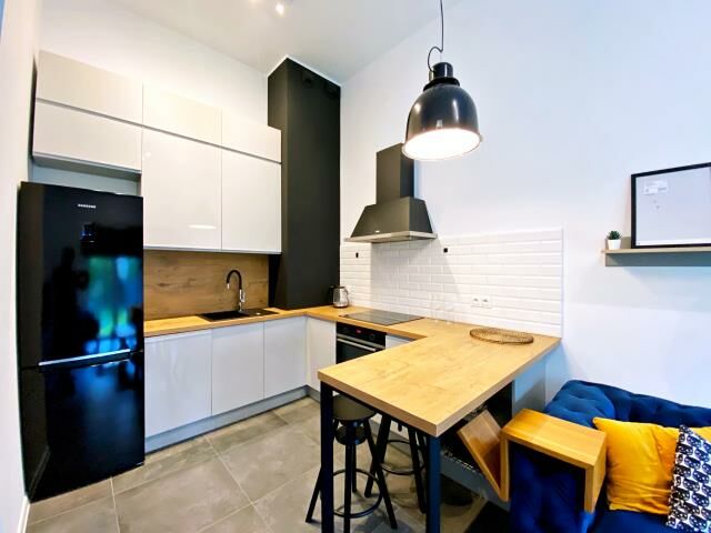 Mieszkanie o powierzchni 33,62 m2 jest w pełni umeblowane i wyposażone w sprzęt AGD.