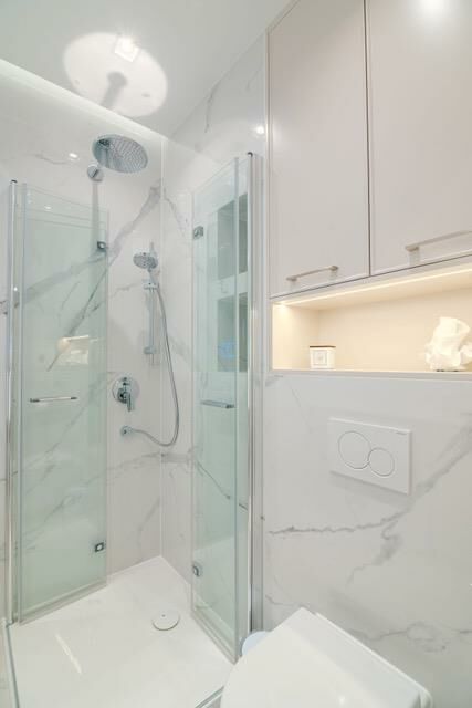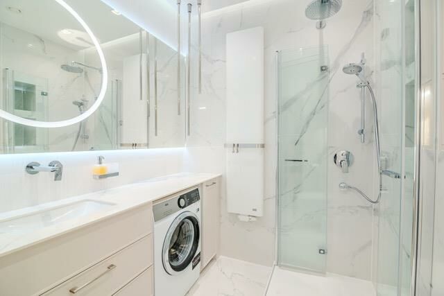 - Łazienka: Prywatna łazienka z prysznicem, umywalką oraz toaletą, pralką