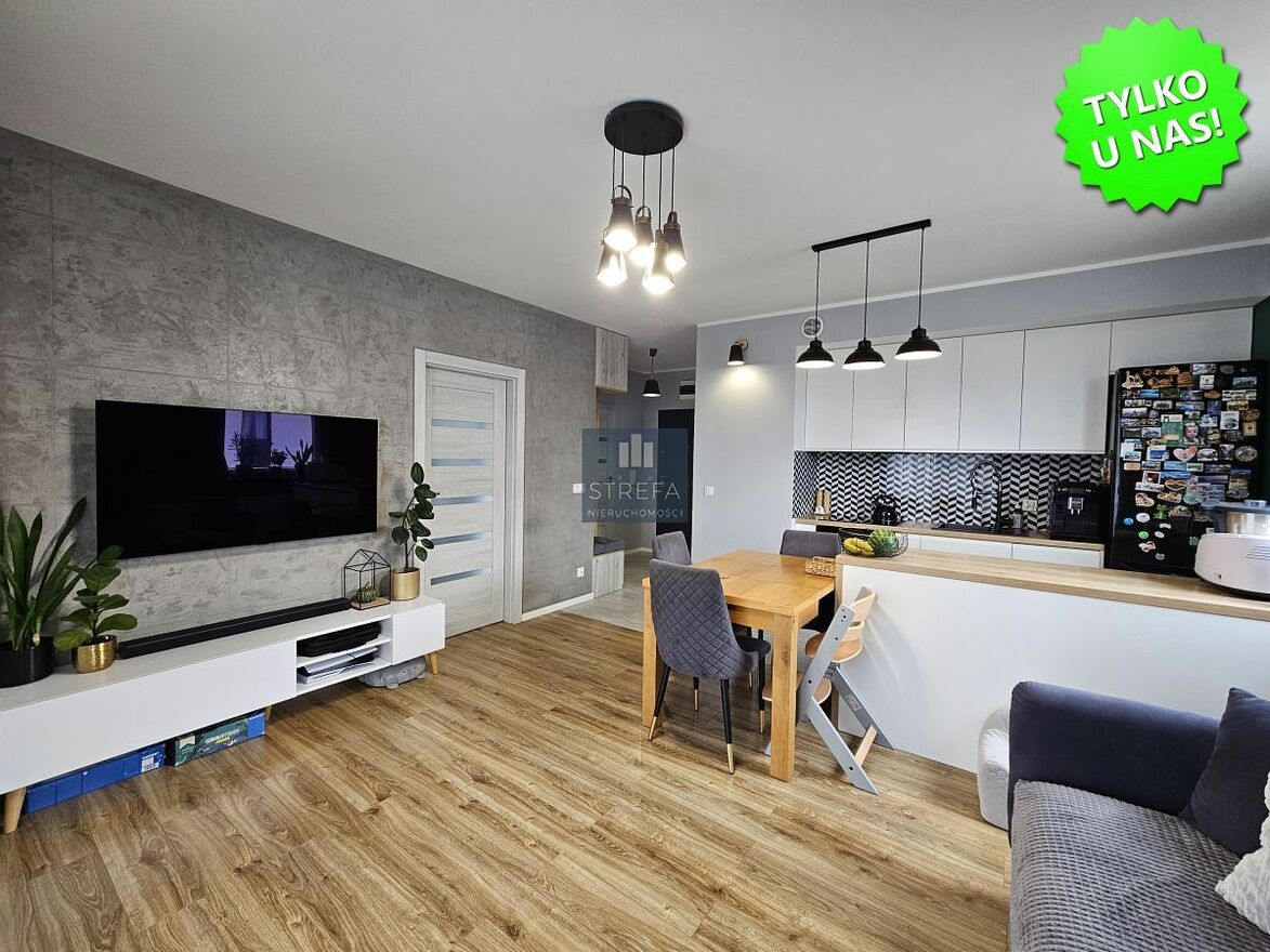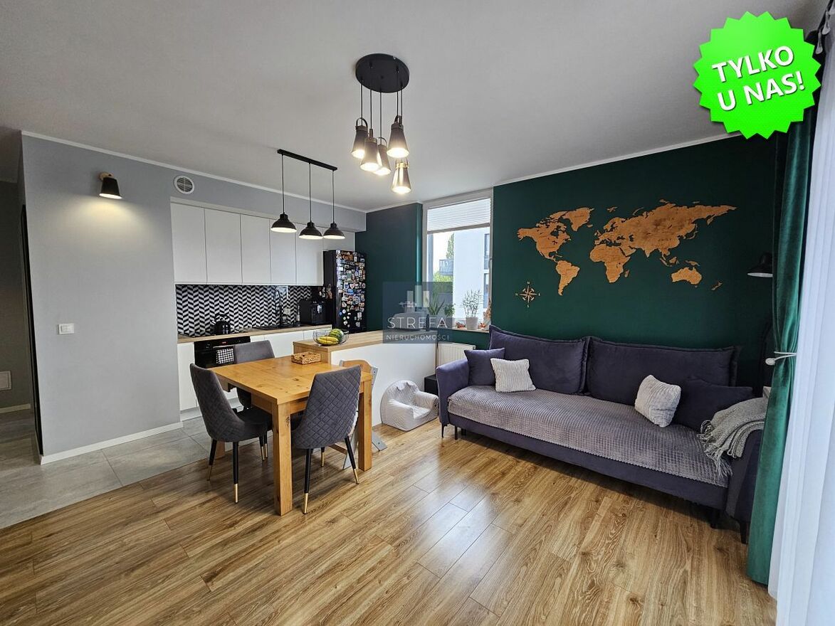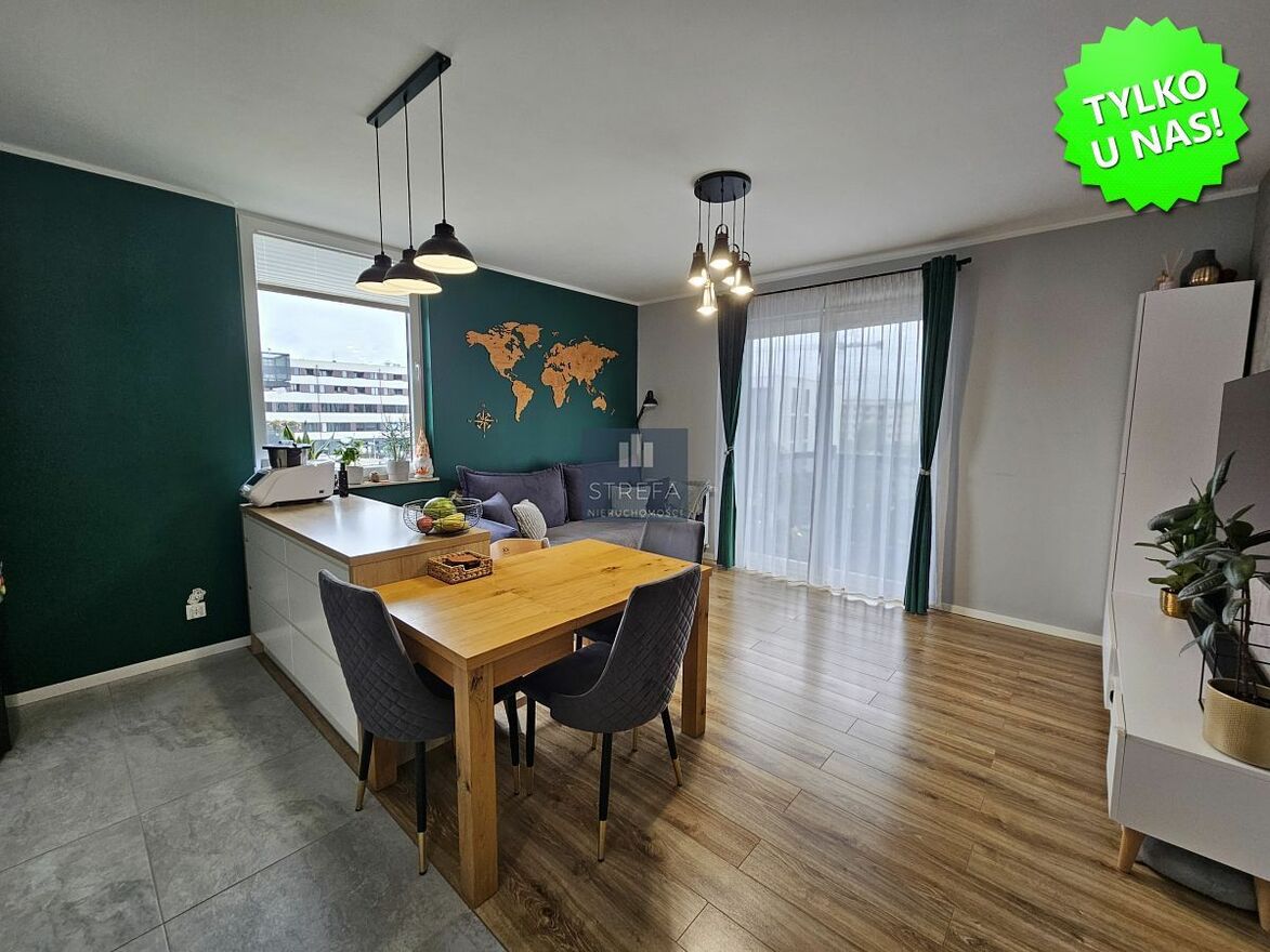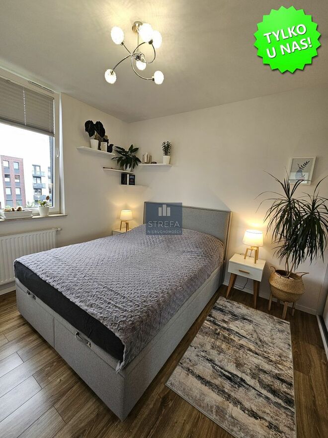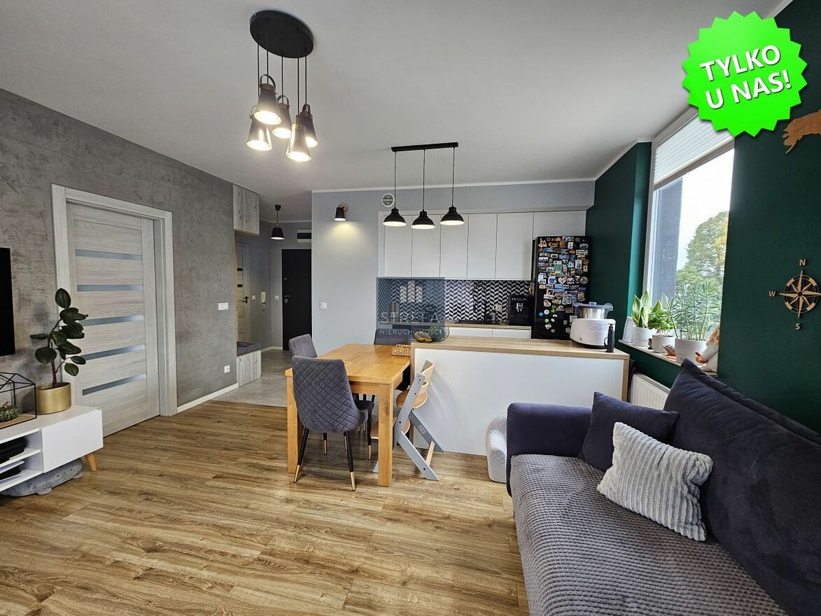 Oferta wyjątkowego, 3-pokojowego mieszkania zlokalizowanego na nowym, prestiżowym osiedlu w dzielnicy Gumieńce, przy ulicy Kwiatkowskiego, na drugim piętrze niskiego, nowoczesnego budynku wybudowanego w 2017 roku.Nieruchomość wykończona w wysokim standardzie, z dbałością o każdy detal, nowocześnie, a jednocześnie przytulnie. Dominują tu neutralne, ponadczasowe kolory, które tworzą harmonijną przestrzeń. Charakteru wnętrzu dodaje efektownie i ciekawie wyeksponowana główna ściana salonu. Podłogi w pokojach wykończone panelami w jednolitym odcieniu drewna, co dodatkowo ociepla wnętrza, w hallu oraz łazience dużymi płytami terakoty.