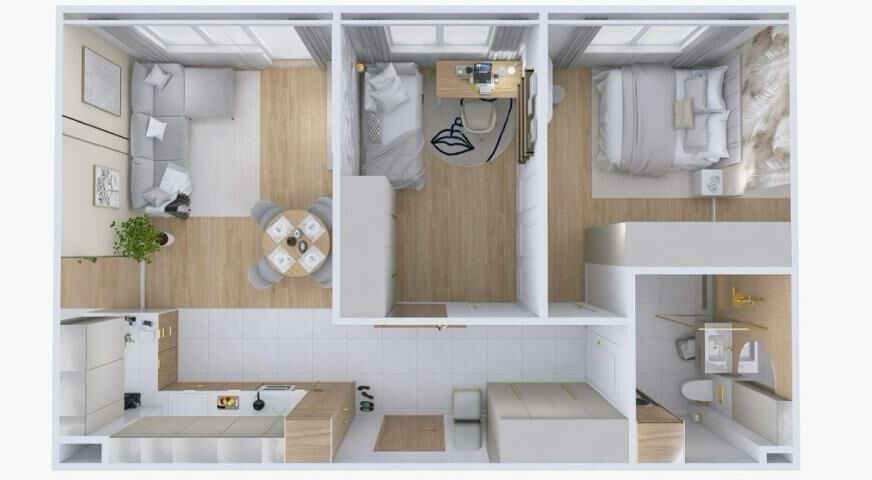 Prezentowane wizualizacje przygotowane przez architekta przedstawiają, jak mieszkanie może wyglądać po wykończeniu zgodnie z indywidualnym projektem.