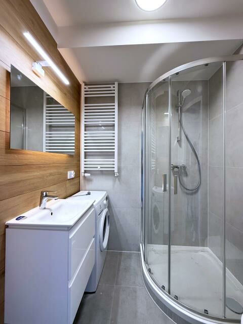 Mieszkanie jest w pełni umeblowane i wyposażone w sprzęt AGD (lodówka, piekarnik, płyta indukcyjna, zmywarka, pralka).