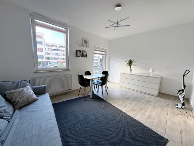Mieszkanie o powierzchni 32,91 m2 jest w pełni umeblowane i wyposażone w sprzęt AGD.