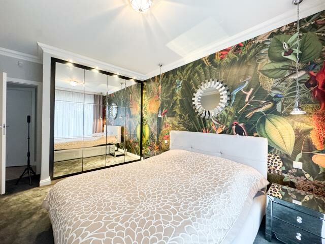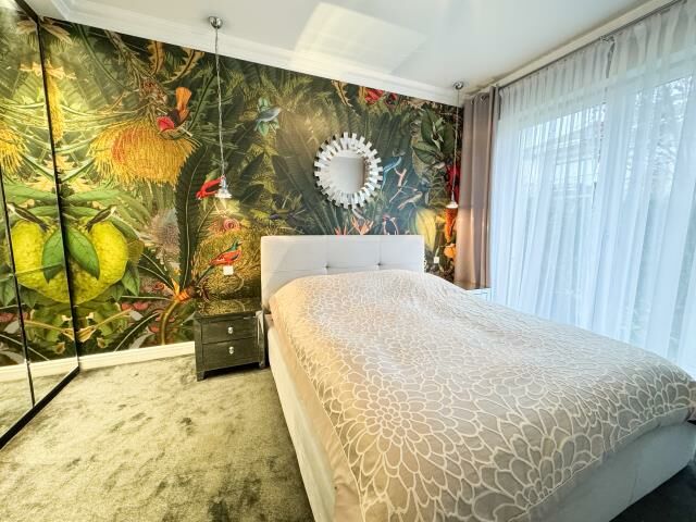 - Sypialnia główna z dużym łóżkiem małżeńskim 160 cm oraz obszerną zabudowa z lustrzanymi drzwiami.
