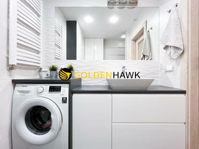Mieszkanie jest wykończone w wysokim standardzie, umeblowane i wyposażone w nowoczesne sprzęty AGD - wyposażenie w cenie mieszkania. (Na życzenie kupującego wybrane meble mogą zostać zabrane).
