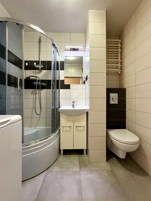 Mieszkanie o powierzchni 32,30 m2 składa się z salonu, osobnej kuchni z oknem, łazienki z prysznicem i WC, korytarza oraz garderoby.