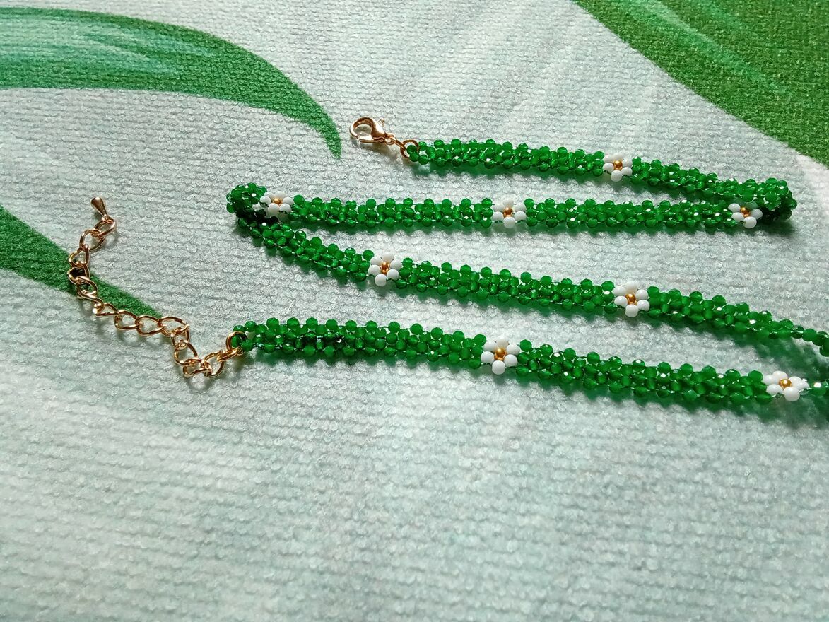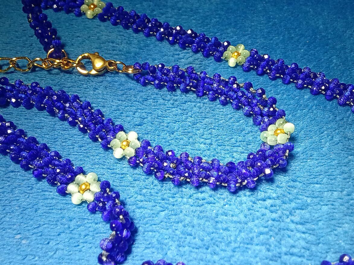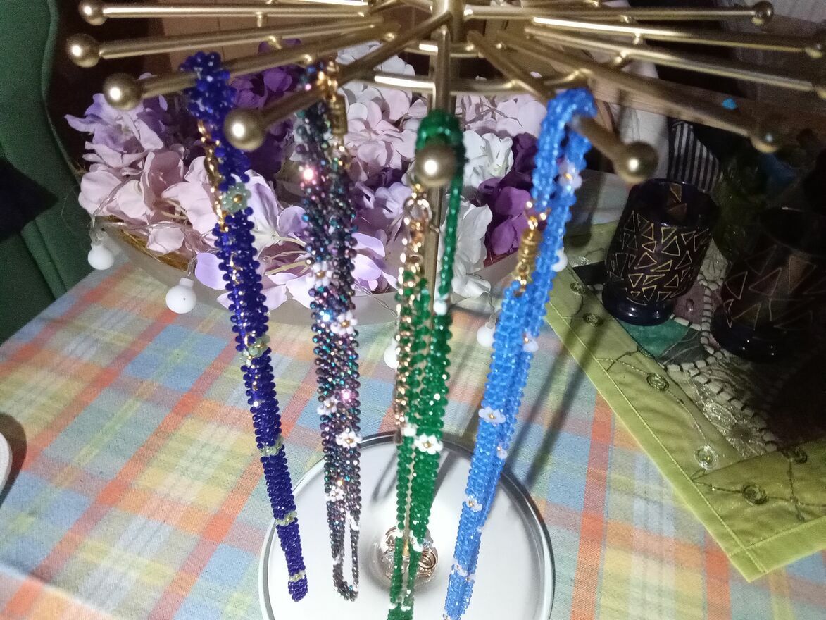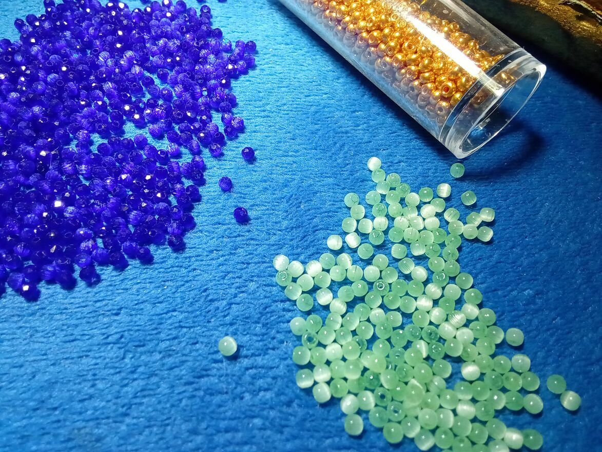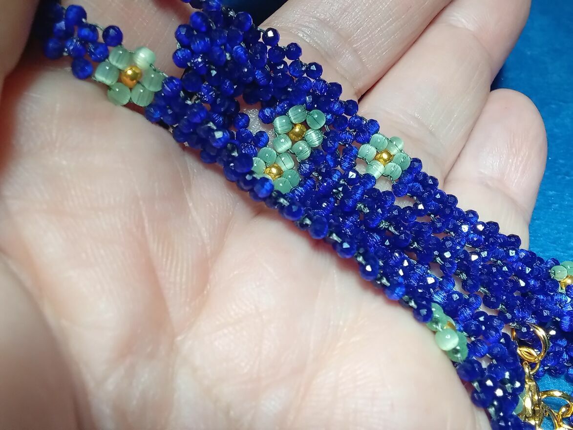 Naszyjnik ze szklanych kryształków fasetowanych, (szlifowanych) \'kocie oko\' 1,5-2mm, wykonany ręcznie na mocnej lince, z zapięciem zakręcanym lub karabińczyk z 5cm przedłużeniem z łańcuszka, długość z zapięciem 44cm.Nie używam żadnych sztucznych tworzyw, robię na indywidualne zamówienie przeróżne kolory, wzory, zapięcia, okucia.