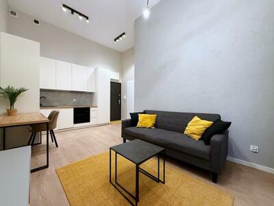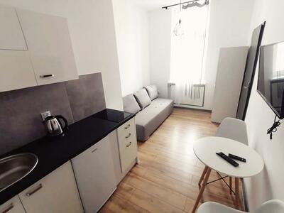 Duża kawalerka na wynajem w pełni umeblowana i wyposażona. W pokoju kanapa, fotele, szafa, komody, biurko. Osobna kuchnia ...