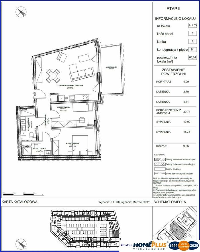 KUPNO OD DEWELOPERA, 0% prowizjiETAP 2 - LOKAL A.1.03, balkon: 9,36 m