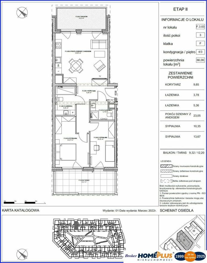 KUPNO OD DEWELOPERA, 0% prowizjiETAP 2 - LOKAL F.3.03, taras: 12,20 m, balkon: 9,32 m