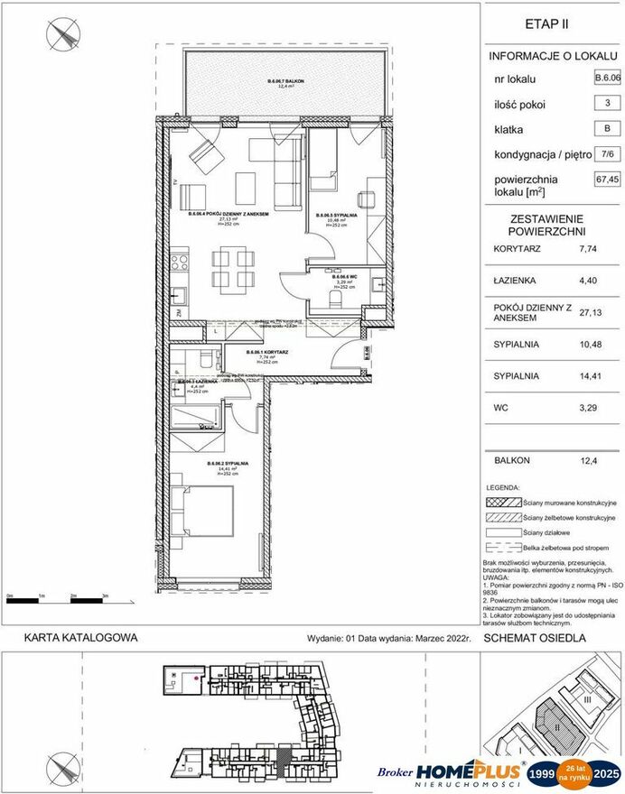 KUPNO OD DEWELOPERA, 0% prowizjiETAP 2 - LOKAL B.6.06, balkon: 12,40 m