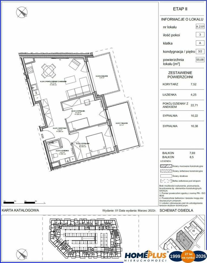 KUPNO OD DEWELOPERA, 0% prowizjiETAP 2 - LOKAL A.2.01, dwa balkony: 7,69 m + 8,50 m
