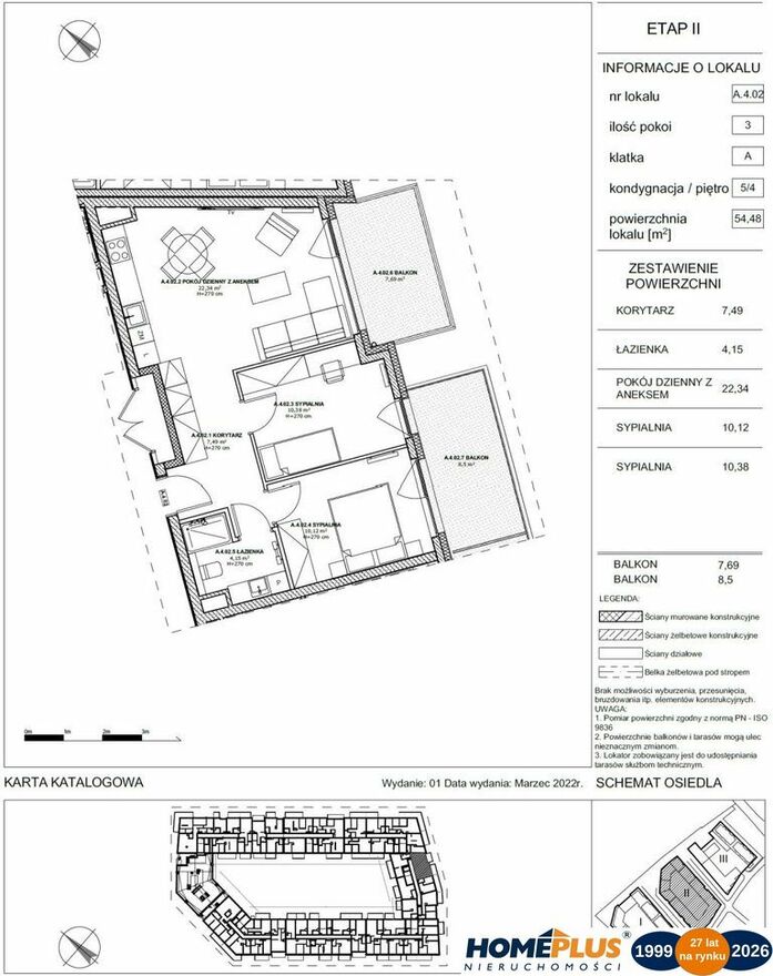 KUPNO OD DEWELOPERA, 0% prowizjiETAP 2 - LOKAL A.4.02, dwa balkony: 7,69 m + 8,50 m