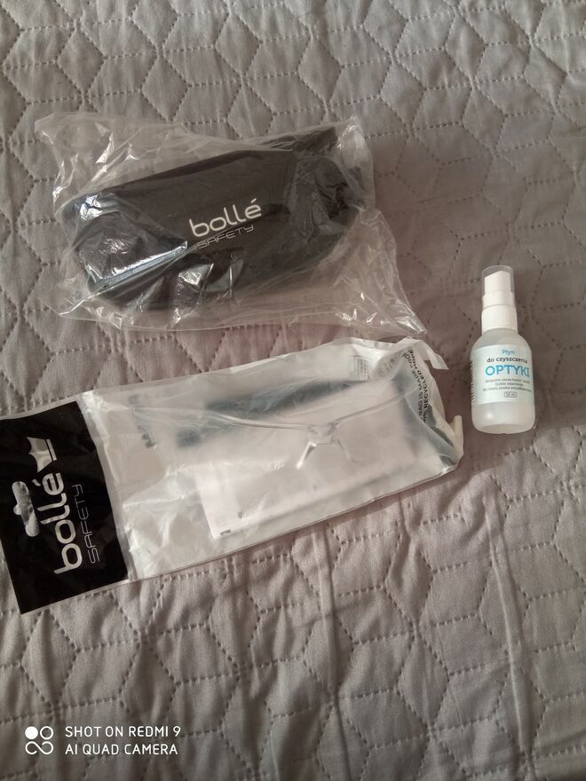Okulary ochronne, pokrowiec + płyn do czyszczenia