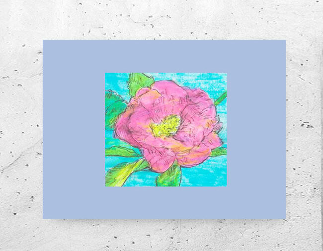 Kolorowa grafika z kwiatkami na liliowym kartoniku A4. Obrazek wystarczy oprawić w ramkę lub antyramę.