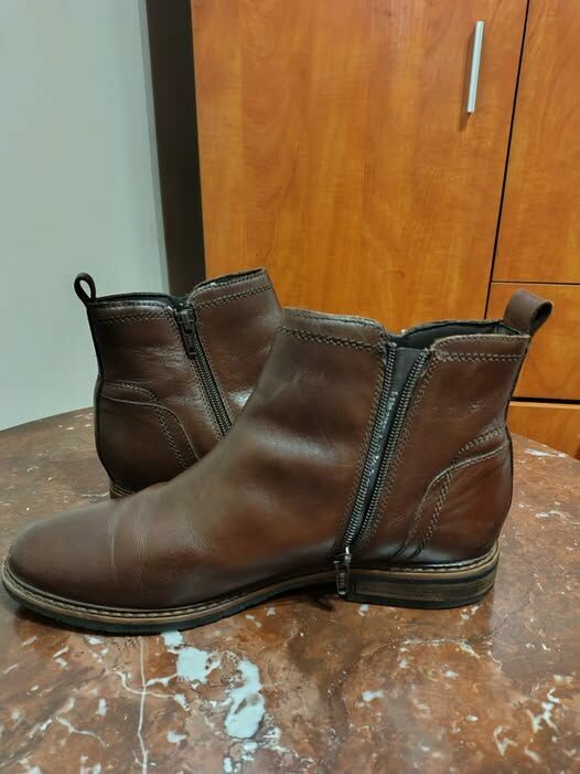 sprzedam botki damskie brązowe skórzane "made in India" na zamek, rozmiar 41, wymiary butów: dlugość cholewy 12,5 cm, wysokość obcasa 2,5 cm, buty są w idealnym staniehelena
