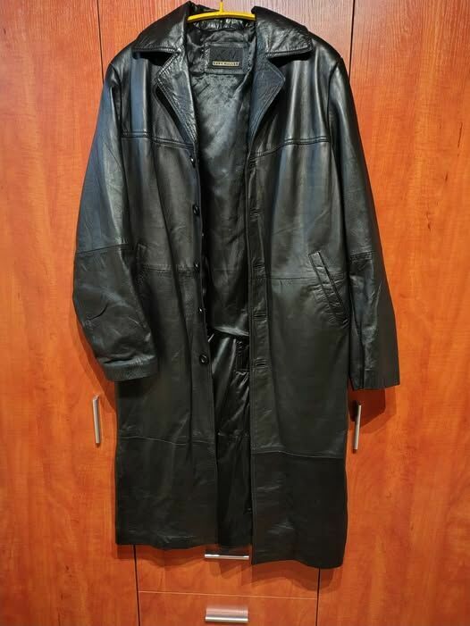 sprzedam męski czarny plaszcz skrórzany