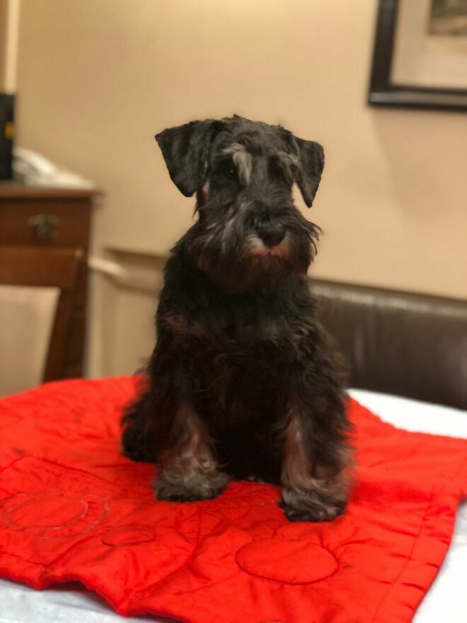 Piękne sznaucerki w wieku 4,5 miesiąca z ciekawym rodowodem , po championach.Szczenięta zachipowane z kompletem szczepień nauczone czystości . Nasze sznaucerki mają cudowne charaktery