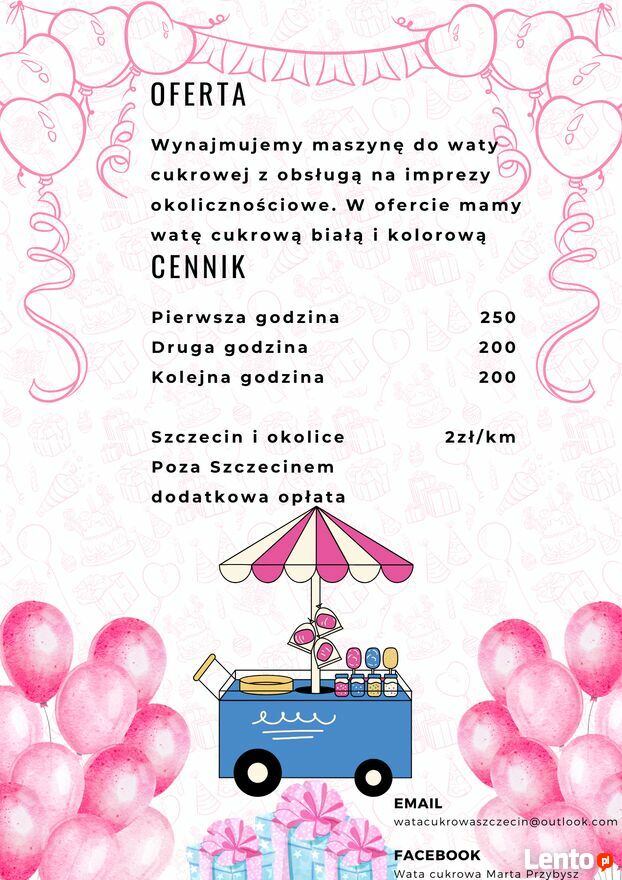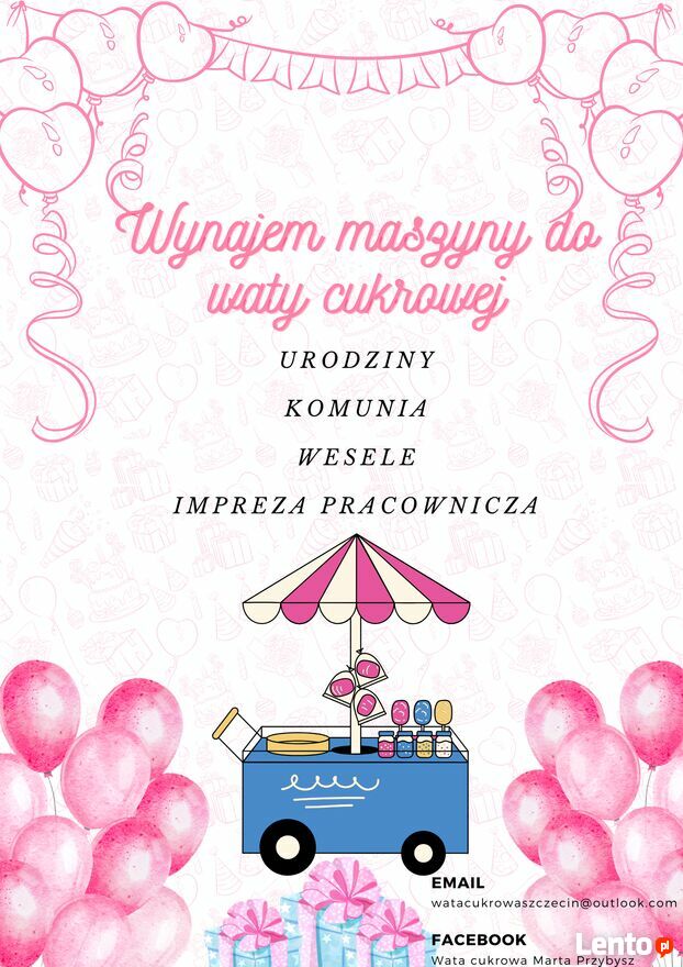 Wynajem maszyny do waty cukrowej wraz z obsługą :- urodziny,