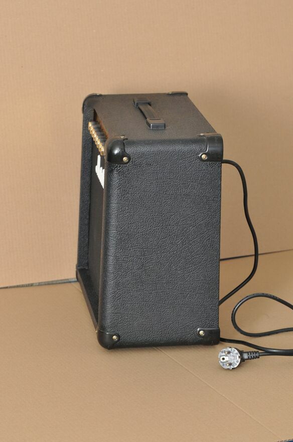 Marshall MG 15 DFX - wzmacniacz gitarowy, stan prawie jak nowy, używany tylko w domu, nie był rozkręcany więcej niż do połowy, zadbany. Można uzyskać z niego dużo różnych brzmień, w jednej gałce jest kilka efektów... Kilka rys ma na plastikowych osłonach rogów i na jednej od spodu jest małe pęknięcie (ostatnie zdjęcie), ale trzyma się mocno, nic nie odpadnie, jak stoi na ziemi to nie widać w ogóle.- moc: 15 W