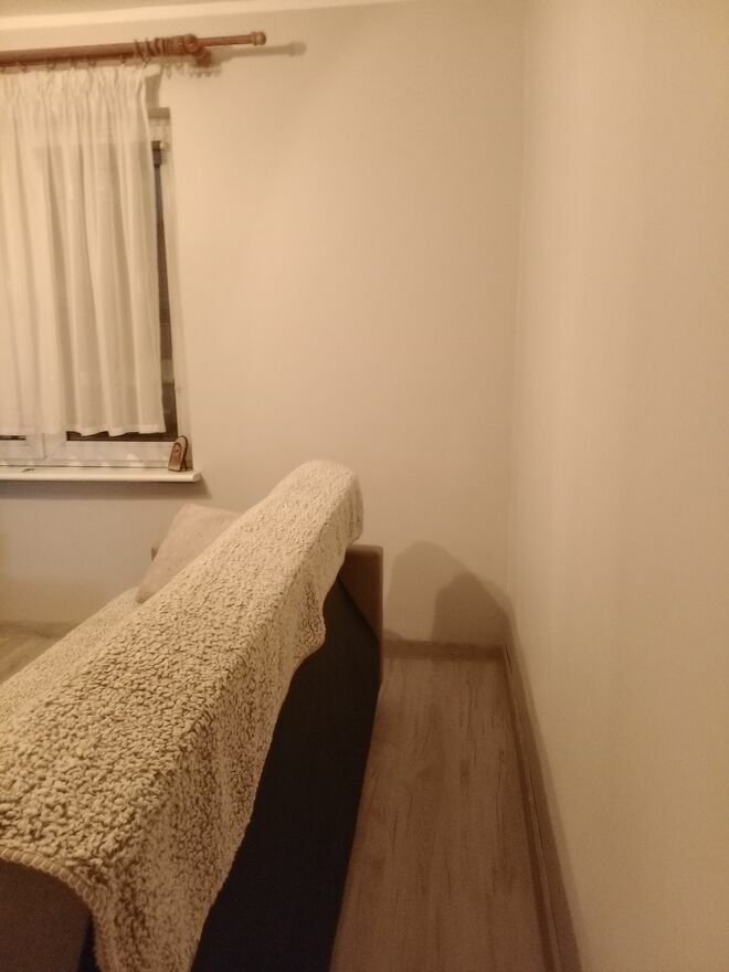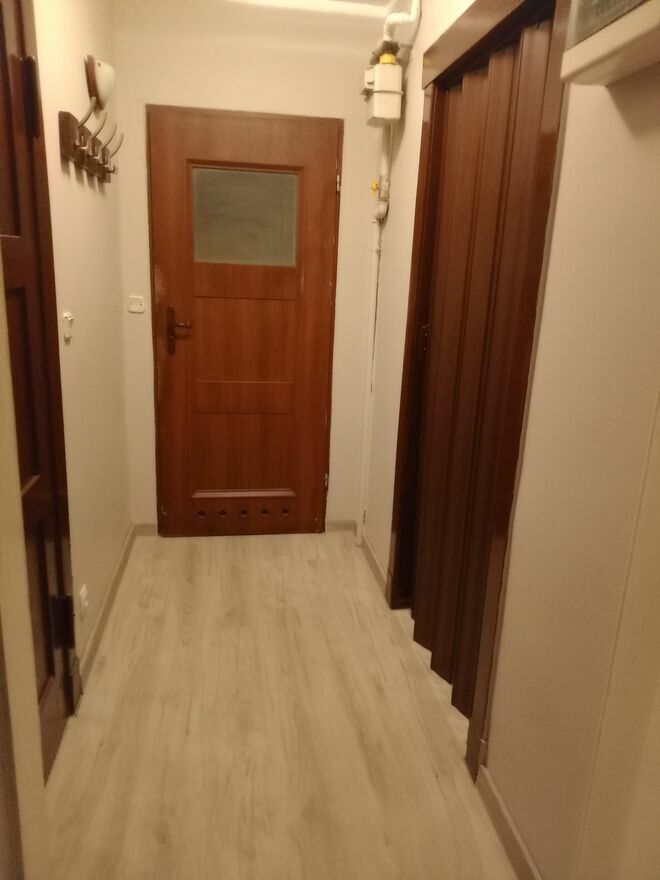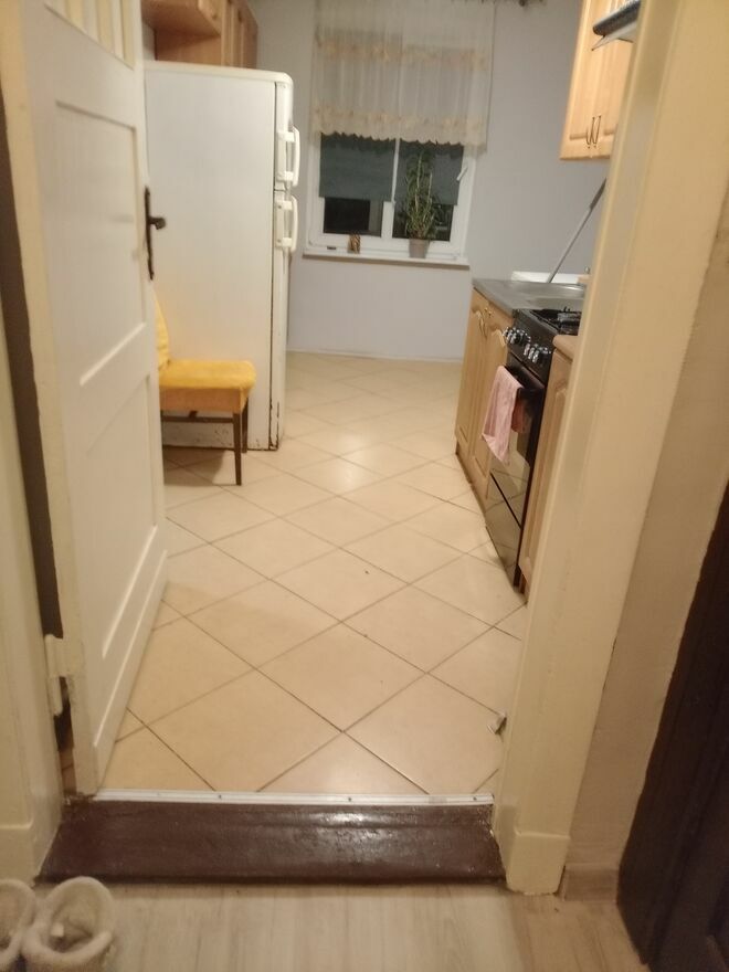 W kuchni jest mały aneks do zrobienia łazienki , jest już wszystko podłączone żeby zamontować prysznic i umywalkę ,Mieszkanie jest już wyremontowane i całe pomalowane na kolor szary .Ściany były gruntowane i wymieniany syfon .Zmienione zostały panele w przedpokoju i pokoju od ulicy.