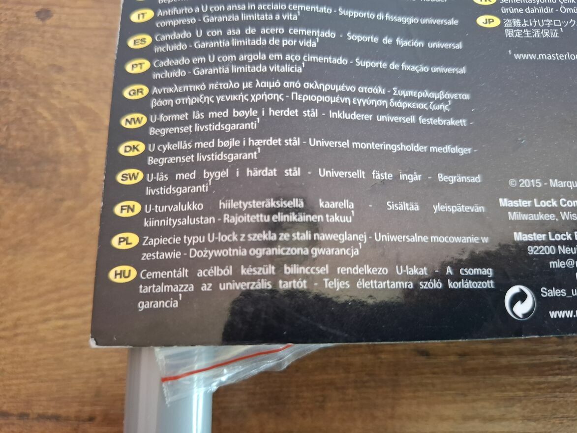 Zapięcie rowerowe Master Lock 110x210x13 , nieużywaneSprawdź zainteresowanie tym ogłoszeniem