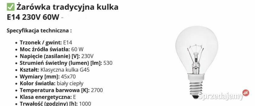 ŻARÓWKA TRADYCYJNA KLASYCZNA KULKA G45 E14 60WSprawdź zainteresowanie tym ogłoszeniem